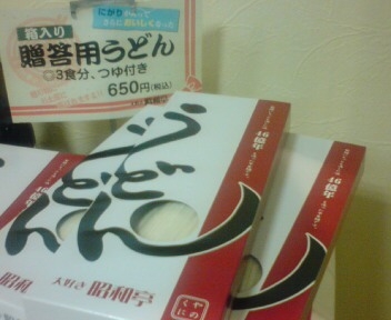 お帰りの際にお持ち帰り用箱うどん(税込650円)を買われるお客様もいらっしゃいます。