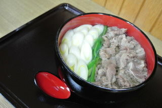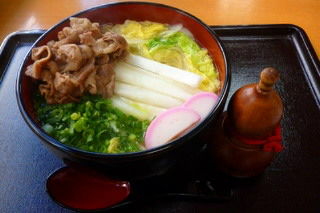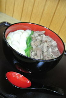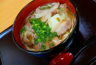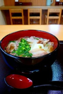 肉白菜うどんで!」