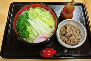 白菜うどんに肉をトッピングしたら